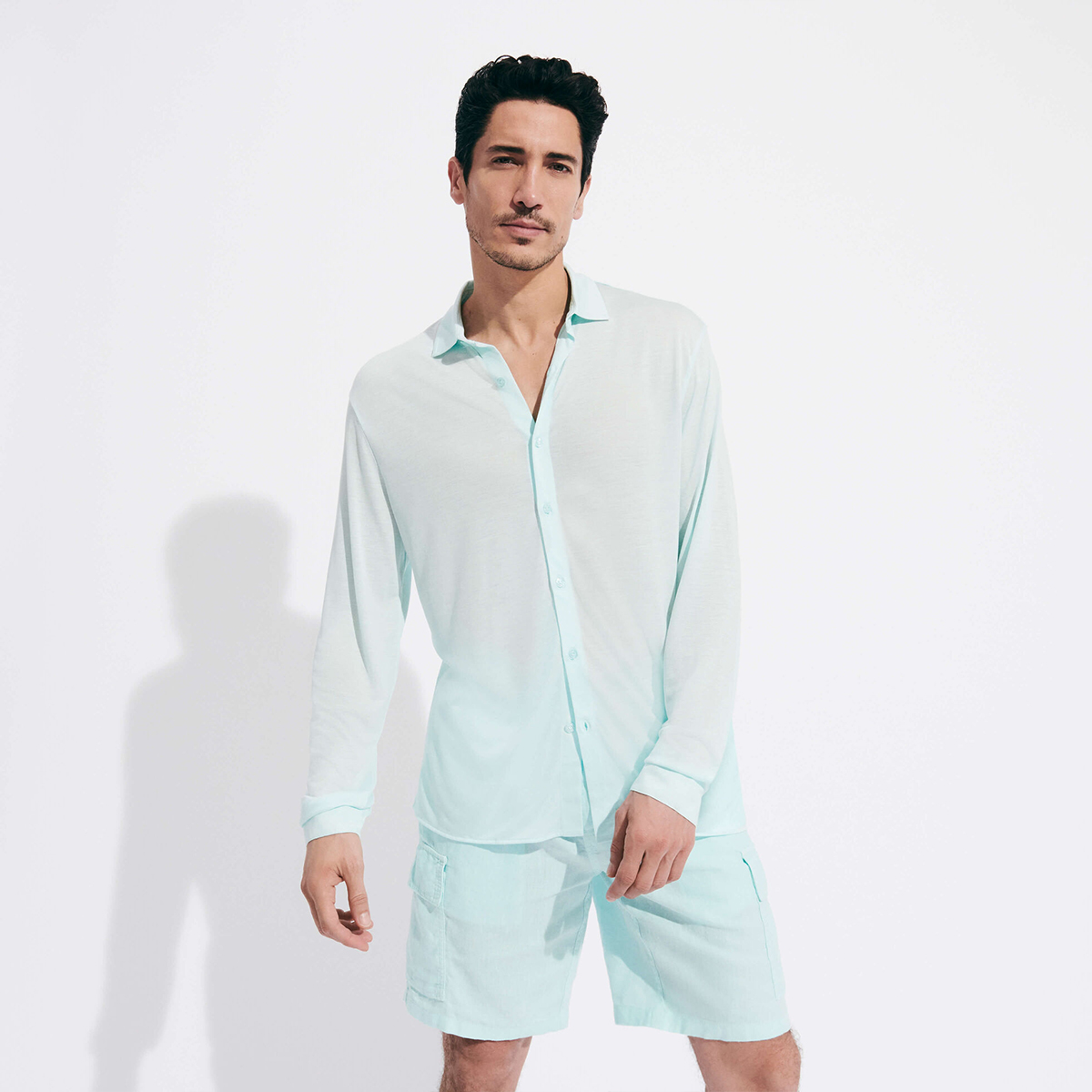 Calandre erkek gömleğinin yumuşak rahat Tencel dokusu sizi asla yarı yolda bırakmaz. Rahat bir görünüm için kolları kıvırabilir, özel bir stil için düğmelerini açık bırakabilirsiniz. Bu gömlek ipeksi görünümü ve mükemmel uyumu, ince Vilebrequin düğmeleri ve aynı ton işlemeli kaplumbağa tonu ile şık bir görünüm sağlıyor. Tencel gömlek, hava ne kadar sıcak olursa olsun nem düzenleyici yapısı ve serin dokusu ile size sınırsız konfor sunuyor.