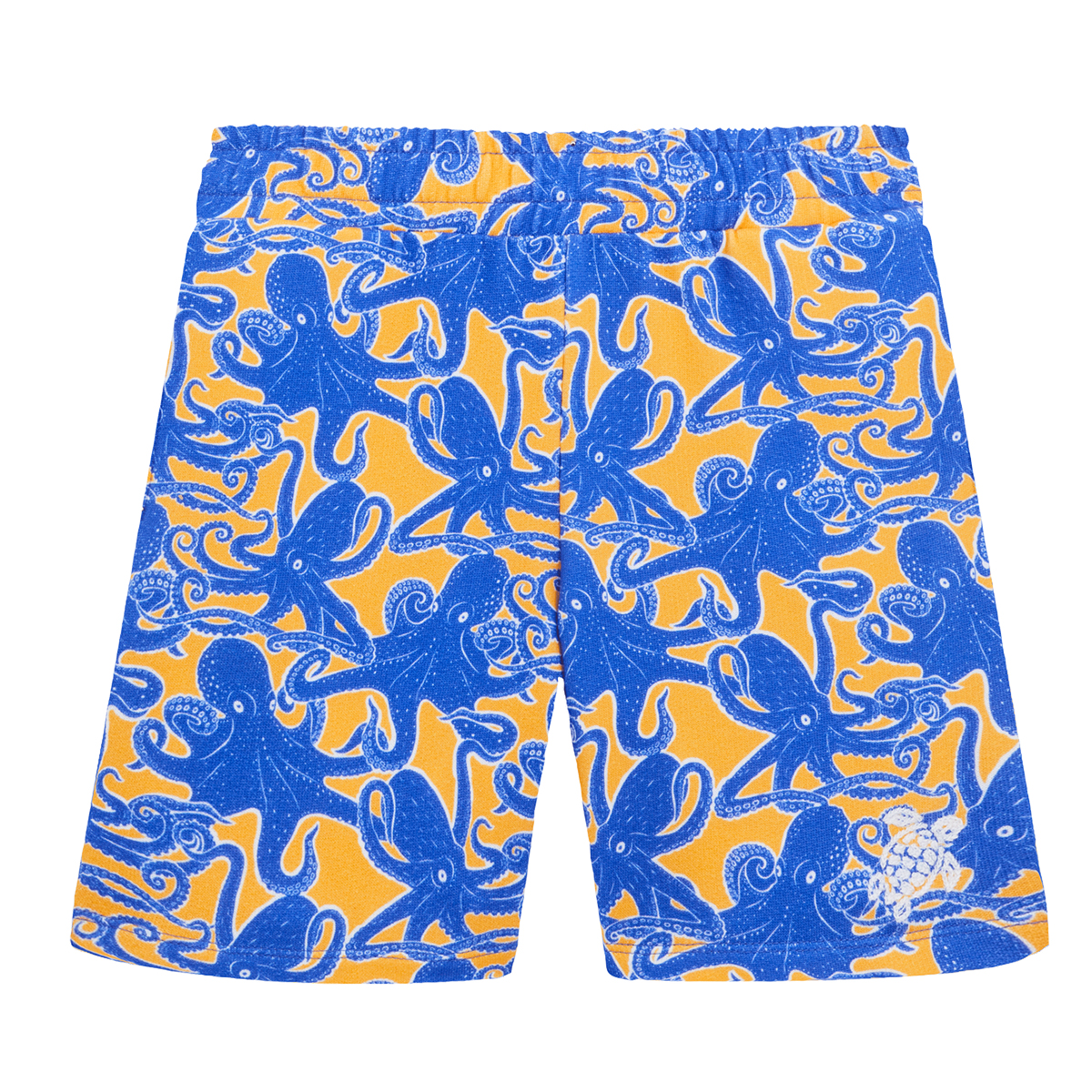 Ahtapot deseniyle süslenmiş ve organik pamuktan üretilmiş zamansız bir mayo şortu koleksiyondaki aynı baskıya sahip diğer ürünlerle kombinlenebiliyor.