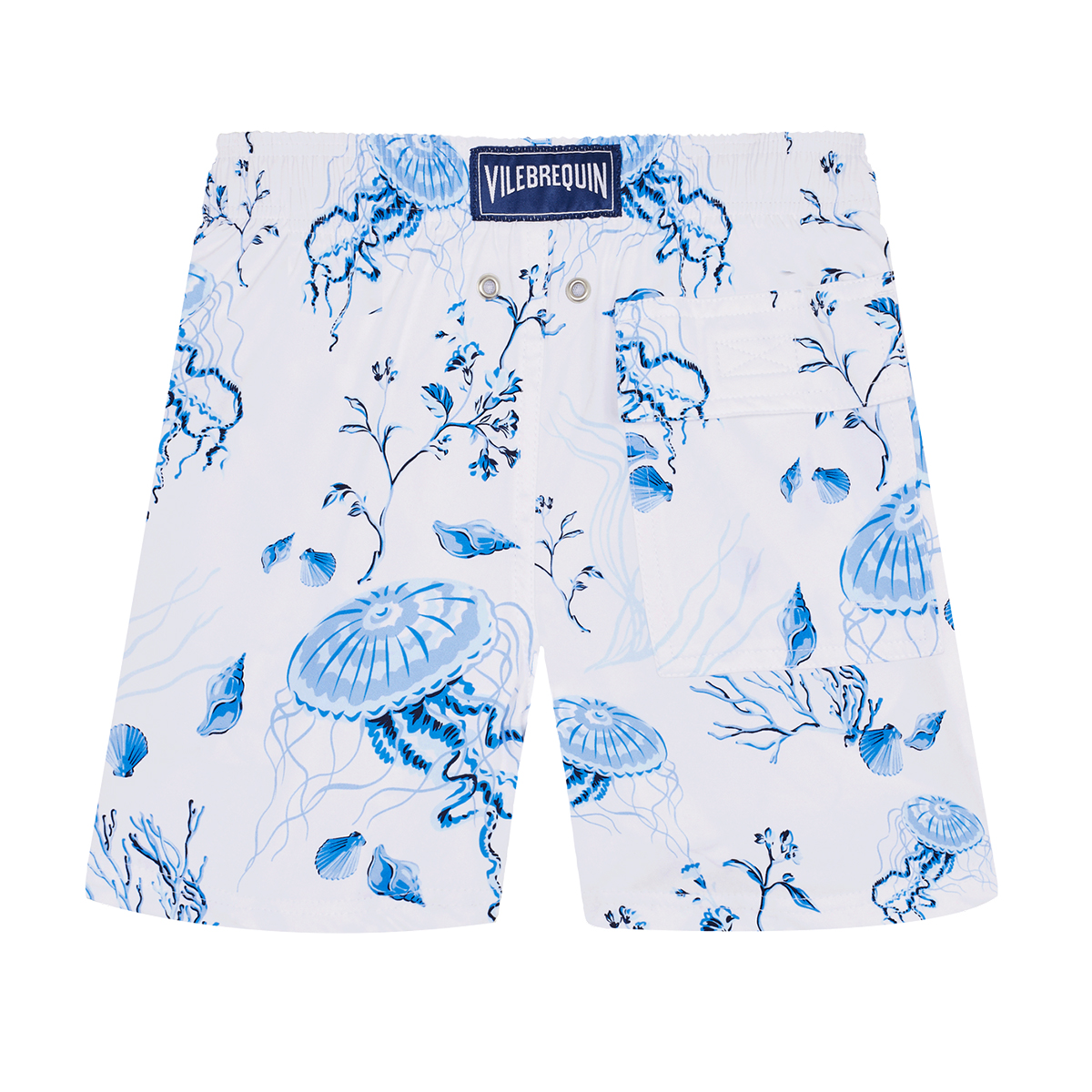 Yumuşak ve hafif Jirise erkek çocuk yüzme şortu, streç kalıbıyla Vilebrequin tasarımına yeni bir yorum getiriyor. Erkek Moorise modelinin çocuklar için uyarlanmış bu versiyonu iki yan ceplerine ek olarak sabit bir düğüme, elastik bel bandına ve arka cebe sahiptir.