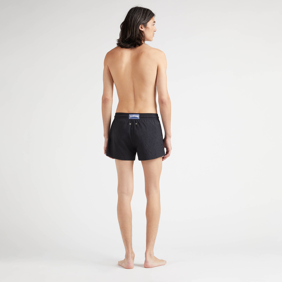 Kaplumbağalarla süslenmiş bu jakarlı erkek mayo şortuyla tropikal bir görünüm elde edin. Esnek geri dönüştürülmüş poliamid ve elastandan üretilmiştir ve mükemmel uyum için elastik büzgülü bel detayına sahiptir.