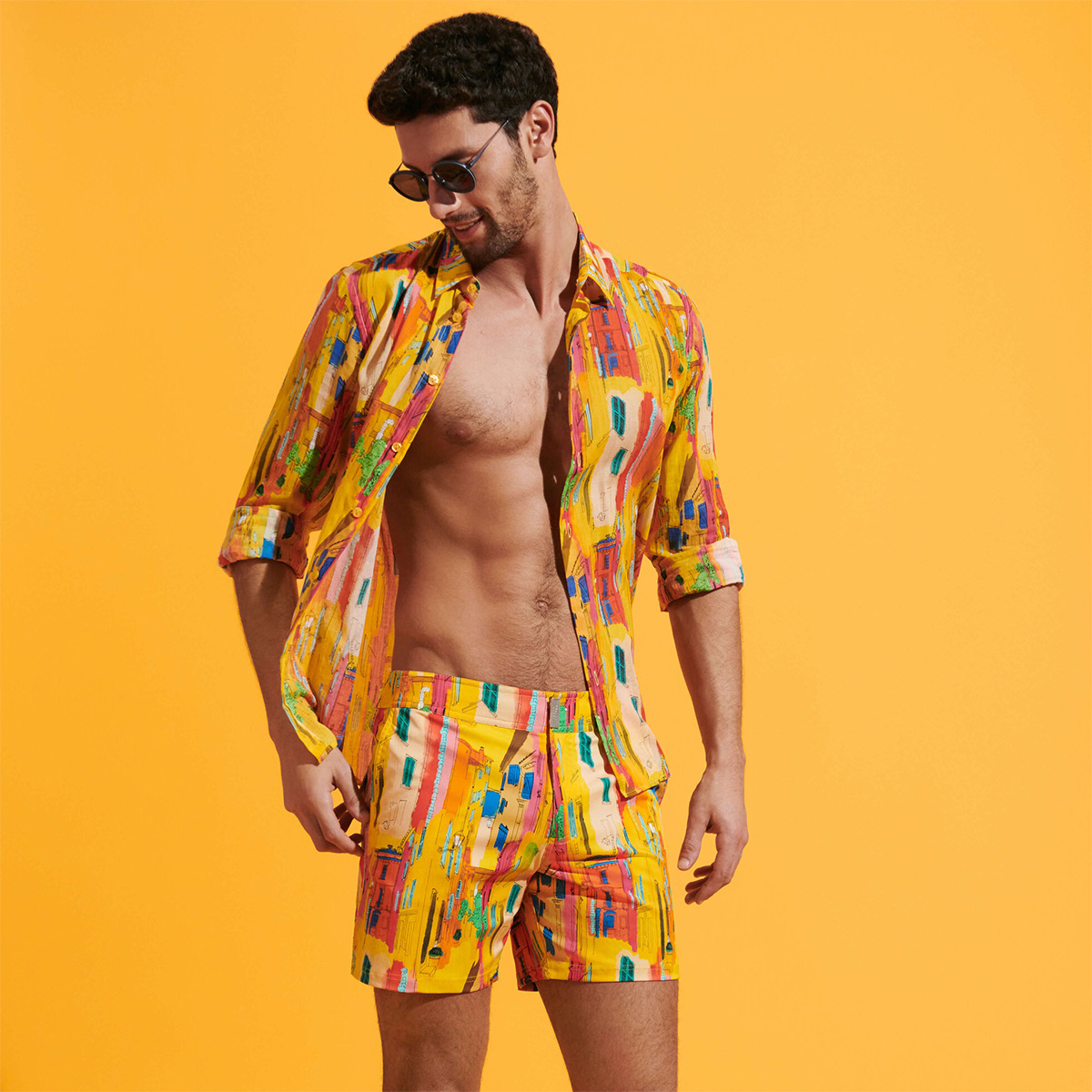 Merise sade erkek yüzme şortlarının rakipsiz şık görünümü, onları deniz kenarında vazgeçilmez kılıyor. İki yan cep ve bir arka cebin yanı sıra Vilebrequin logolu dikdörtgen sabit kemeri ve belde ikonik Vilebrequin logosu ve fit, streç ve daha kısa kalıbı ile zamansız bir konfor sağlıyor.