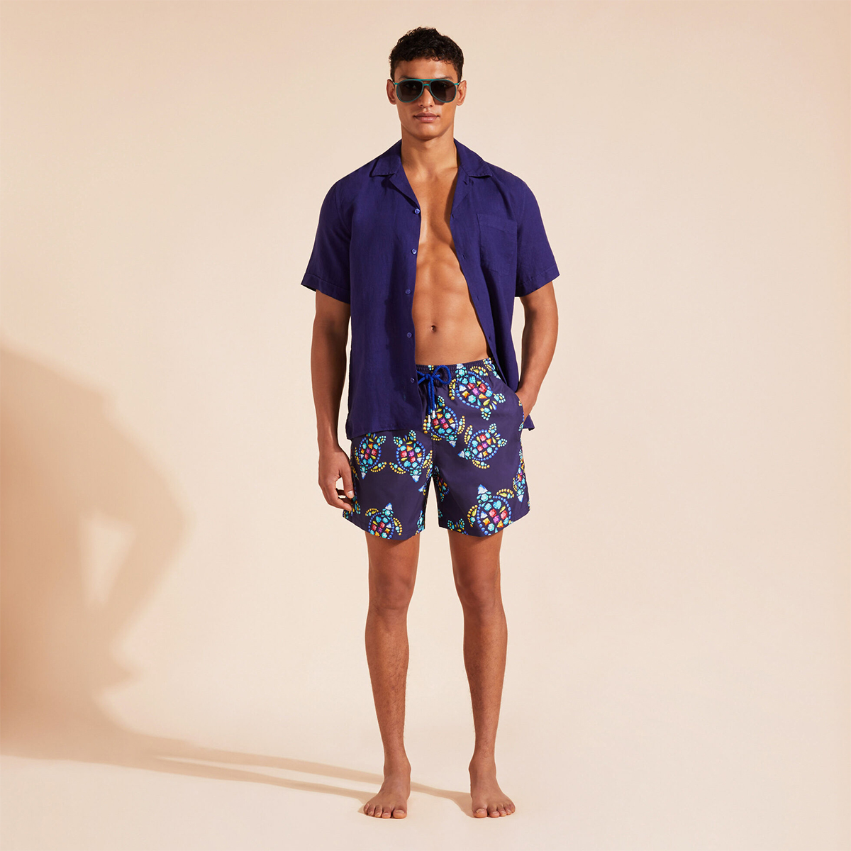 Vilebrequin’in ikonik, 1970’lerden gelen, Vilebrequin ruhuna sadık ve en sevilen stili. Yumuşak, çabuk kuruyan kumaştan yapılmış bu mayo, iki yan cebi ve arka cebi ile konfor sunuyor. Elastik bel kemerli mayo ve Zamac uçlu büzme ipi ile stil tamamlanıyor.