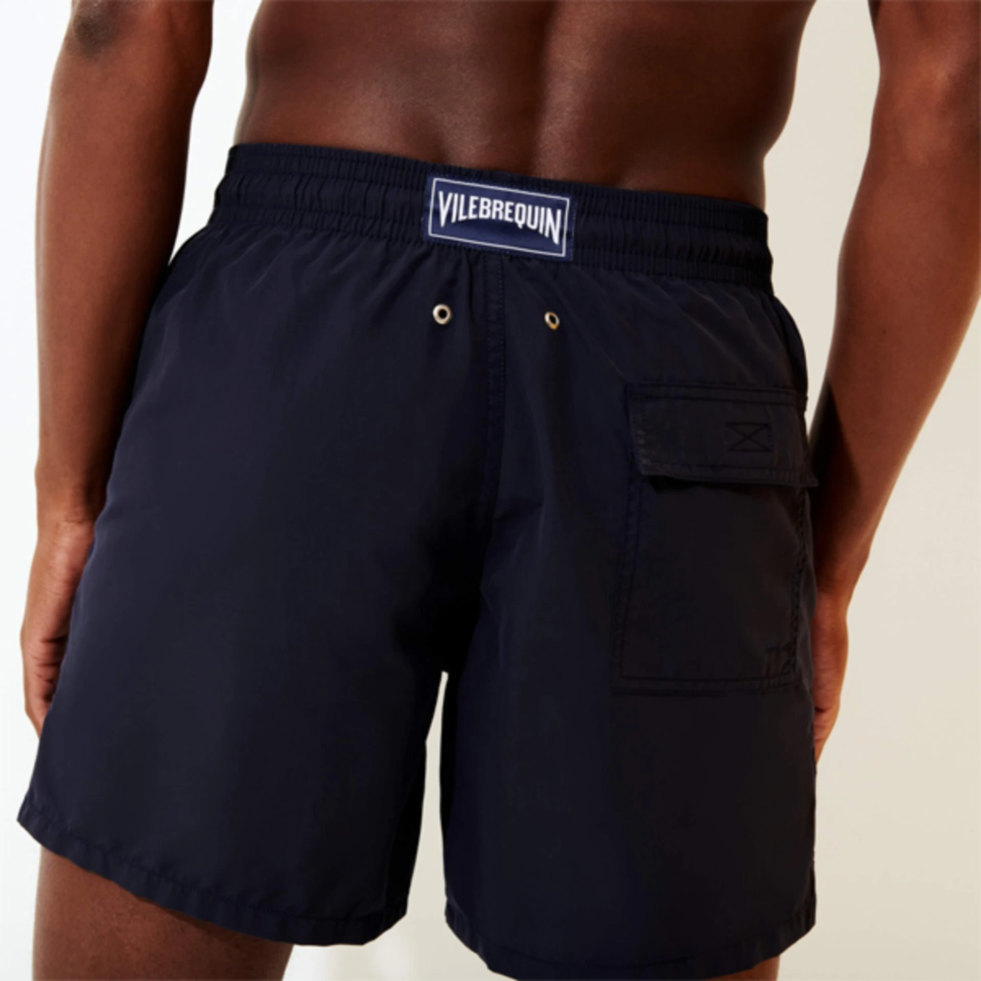 • İpli elastik bel bandı, bel arkasında ikonik Vilebrequin logo.