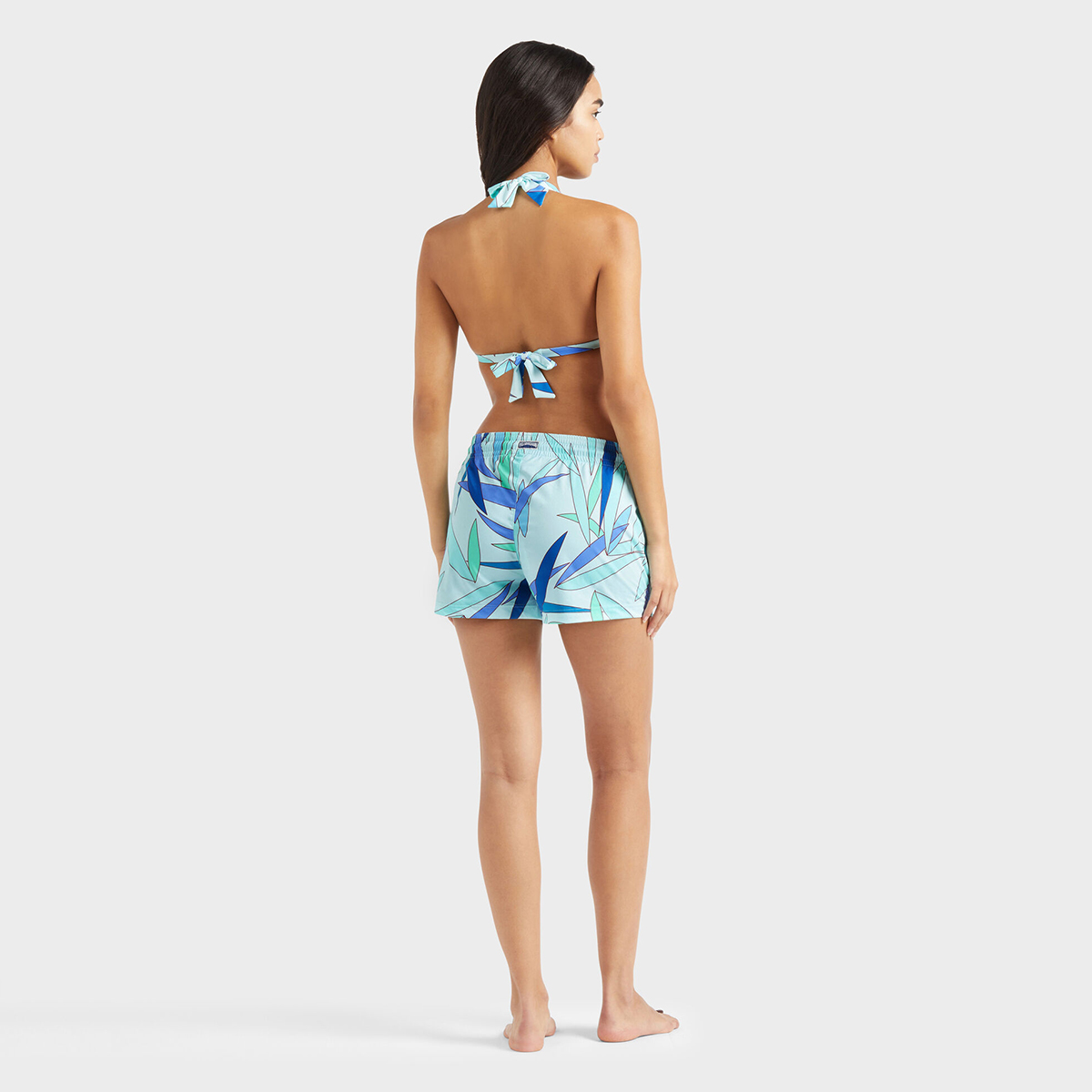 Rahatlık için esnek kumaştan üretilen bu renkli kadın mayo şortlarının arkasında ikonik Vilebrequin logosu yer alıyor ve daha fazla ayrıntı için kazınmış uçlarla tamamlanıyor.