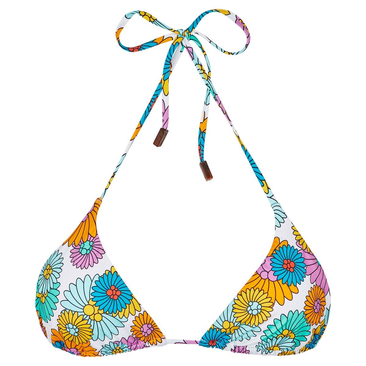 Fleur kadın bikini üstü, klasik üçgen şekli, çıkarılabilir dolgu pedleri, boyun ve sırttaki ayarlanabilir ipleri ile vücut şeklinize uyum sağlar. Bikini ipleri Vilebrequin logosu kazınmış uçları ile sofistike bir görünüm sunuyor