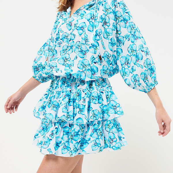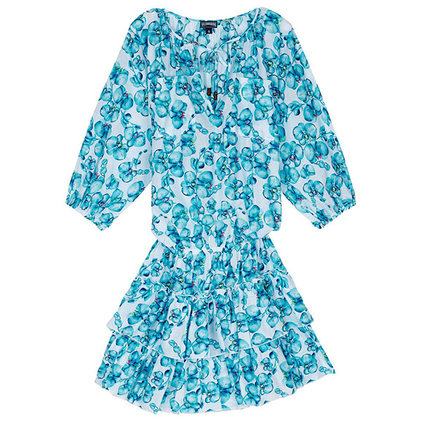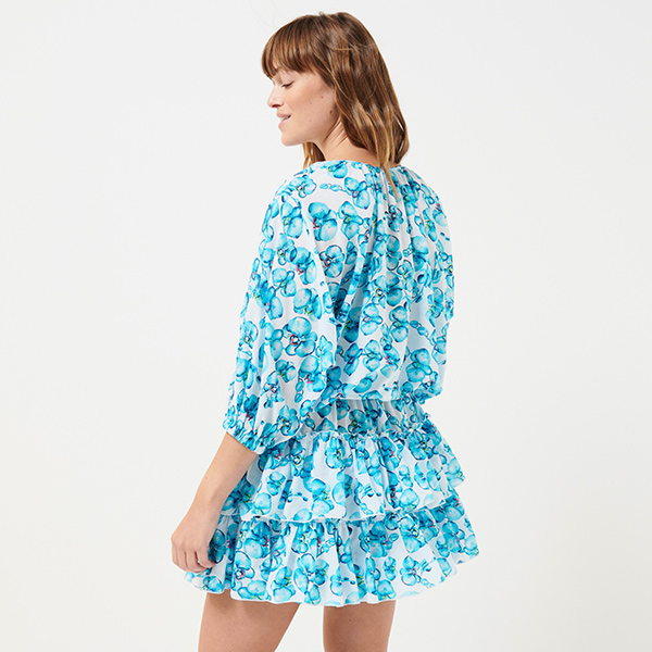 Bu Lauriane Orchidées kadın kısa pamuklu elbise ile tropik çiçeklerin kokusunu içinize çekin. Büyük fırfırlar ve bağcıklı yaka, ona güneşli günler için mükemmel bir Boho şıklığı verir. Beli ve kollar lastiklidir.